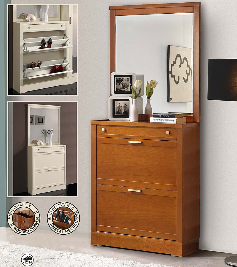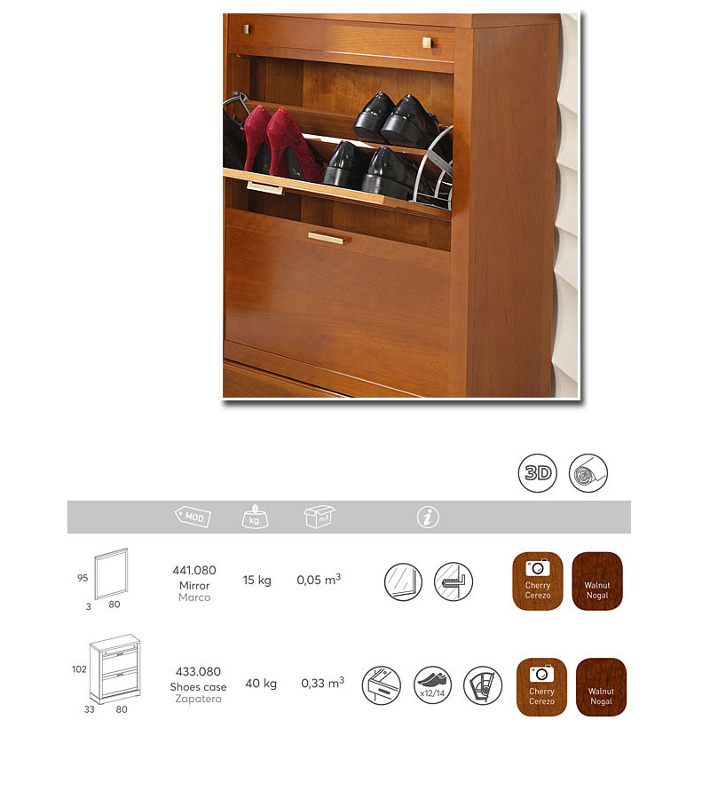 Обувница (тумба для обуви) Панамар 433.080 варианты цвета: шпон ореха nogal или шпон вишни cerezo, материал мебельный щит из массива бука производство мебельная фабрика Panamar, Испания