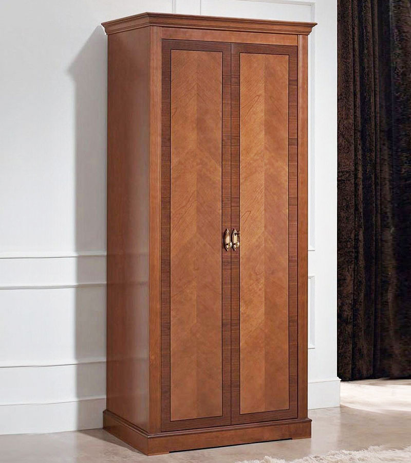 Шкаф платяной Панамар 875.002 цвет шпон вишня cerezo, 2-х дверный, плоский цоколь, материал мебельный щит из массива бука производство мебельная фабрика Panamar, Испания
