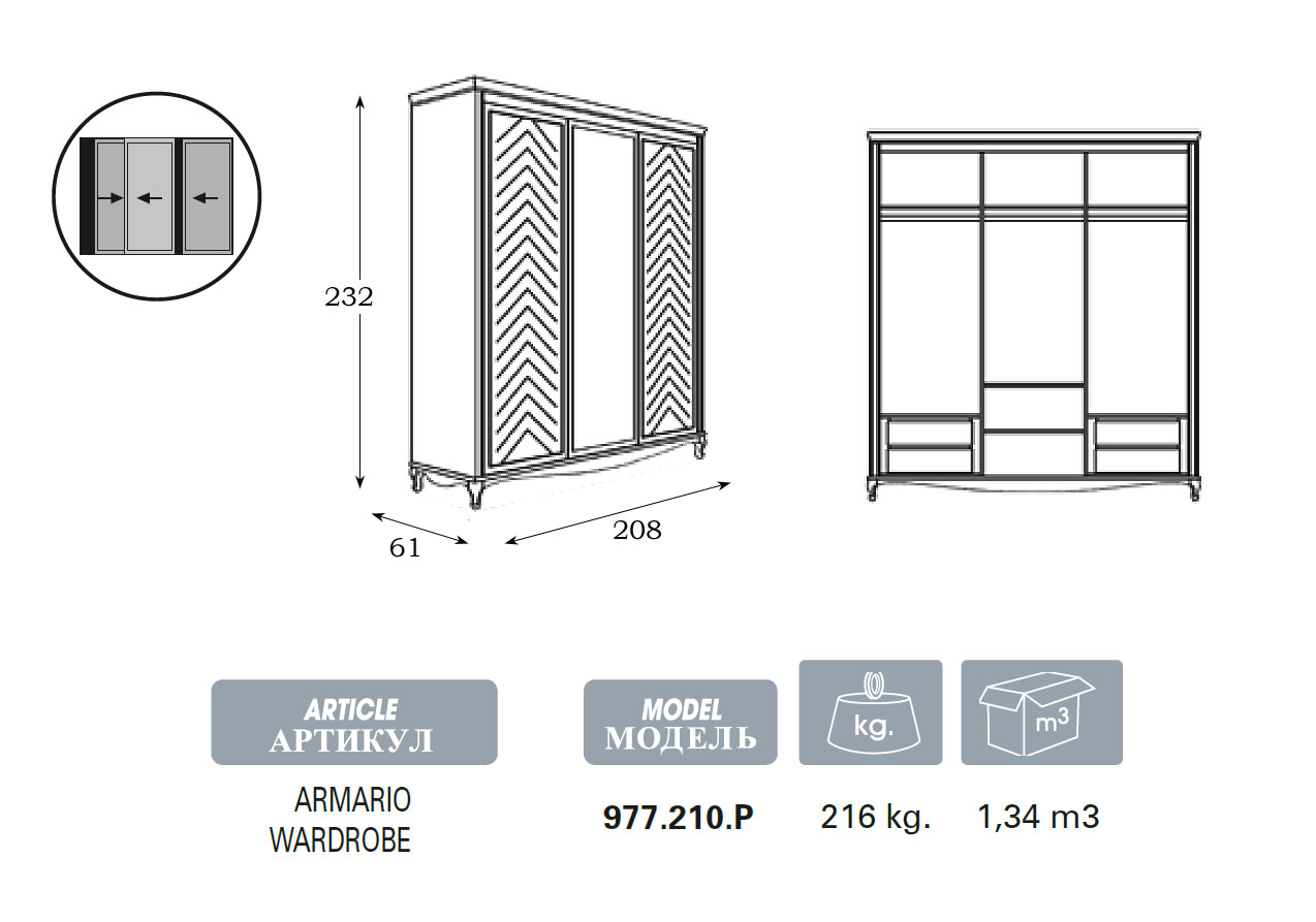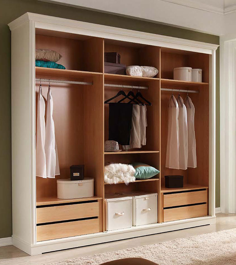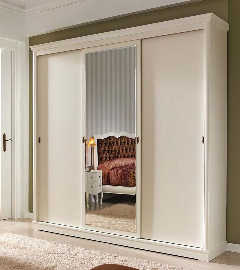 Шкаф купе 3-х дверный Панамар 977.210 цвет белый blanco, материал шпон вишни cerezo, мебельный щит из массива бука производство мебельная фабрика Panamar, Испания