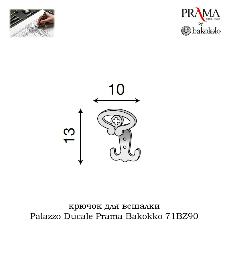 итальянская, мебель, Palazzo, Ducale, Prama, Bakokko, прихожая, крючок для вешалки, 71BZ90, бронза