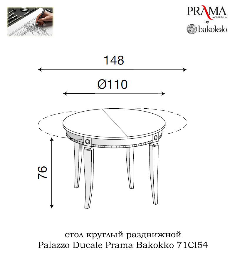 | стандартная комплектация: | Конструкция стол Palazzo Ducale Prama Bakokko 71CI54: круглая столешница, раскладывается за счет вставки 38 см в центральной части; резные ножки из массива |