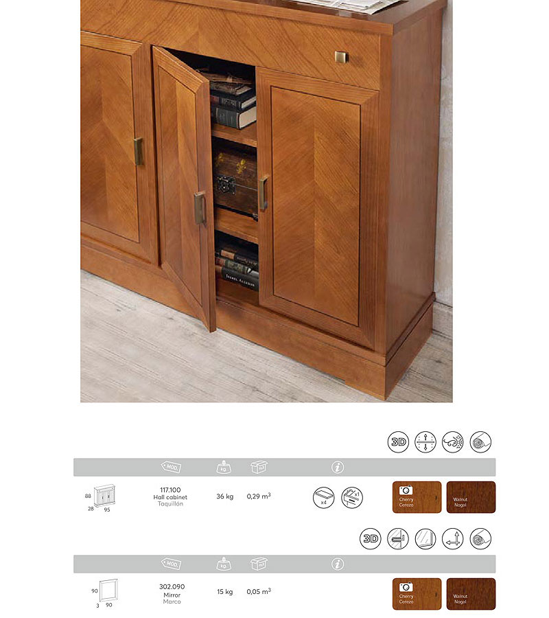 Консоль (узкий комод) Панамар 117.100 цвет шпон вишни cerezo материал мебельный щит из массива бука производство мебельная фабрика Panamar, Испания