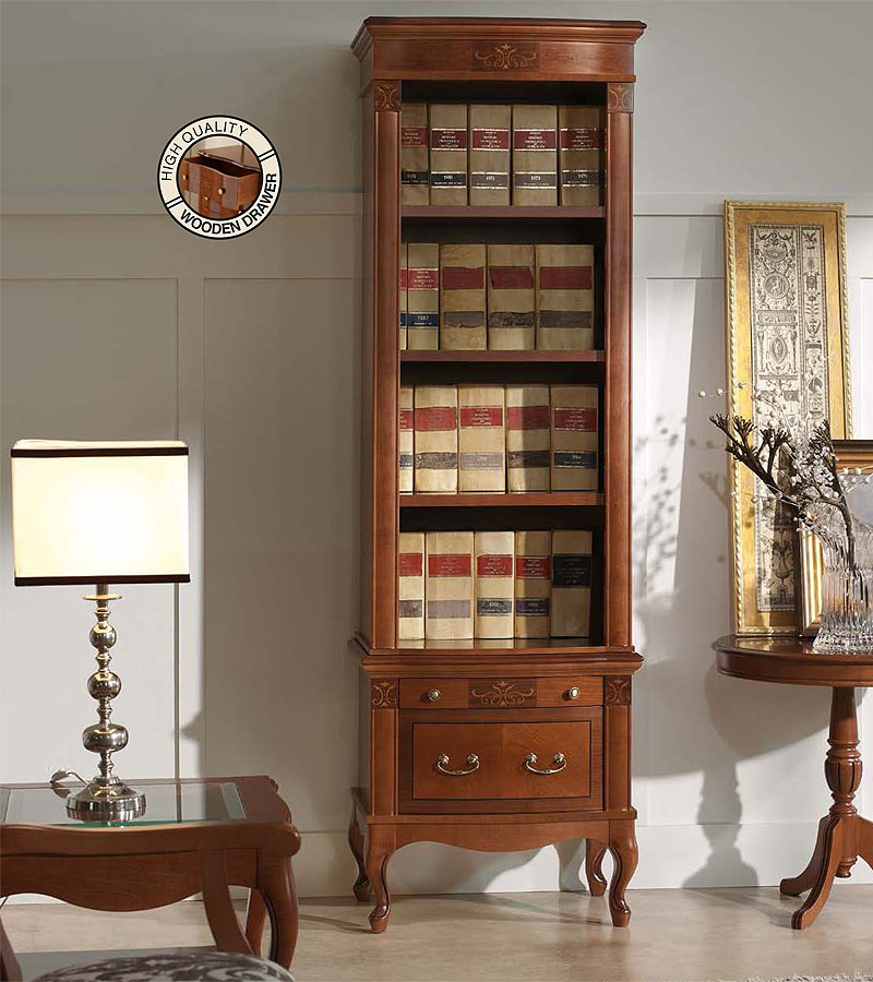 Книжный шкаф (библиотека) Panamar 827.000 открытый + тумба Panamar 887.000 на ножках варианты цвета: шпон ореха nogal или шпон вишни cerezo, материал мебельный щит из массива бука производство мебельная фабрика Panamar, Испания