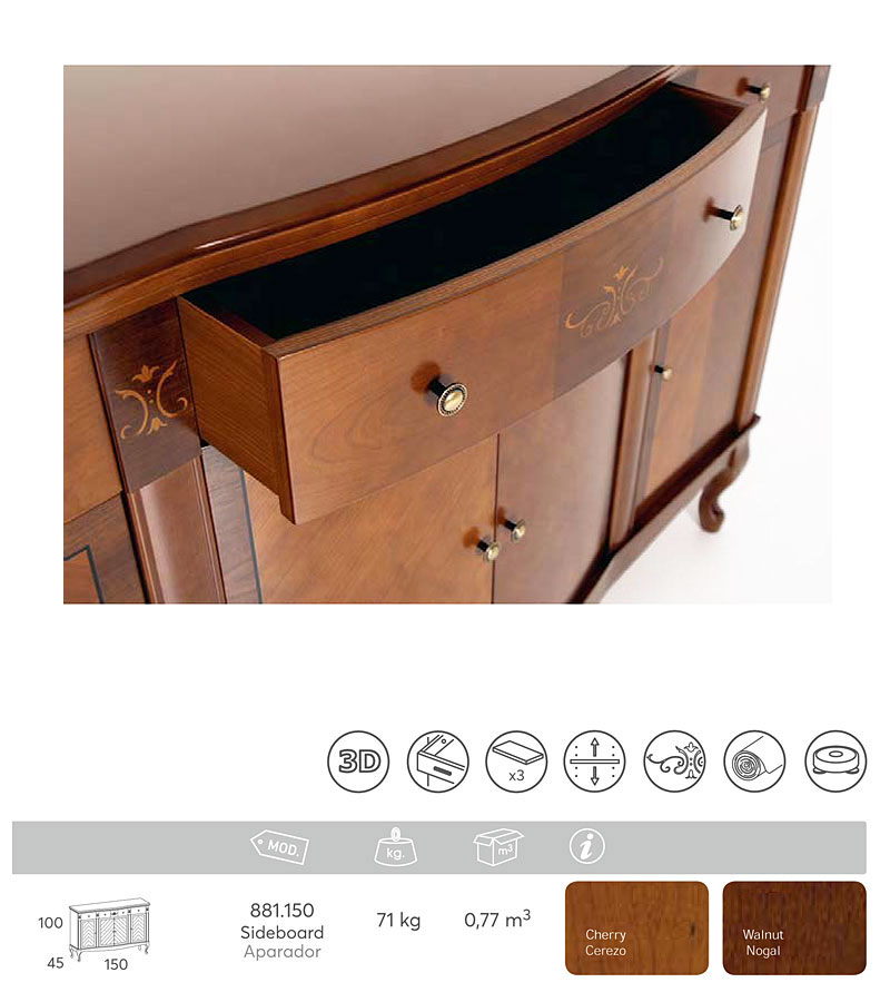 Буфет ( комод, прилавок) Панамар 881.150 цвет шпон вишня cerezo, на ножках, материал мебельный щит из массива бука производство мебельная фабрика Panamar, Испания