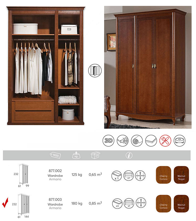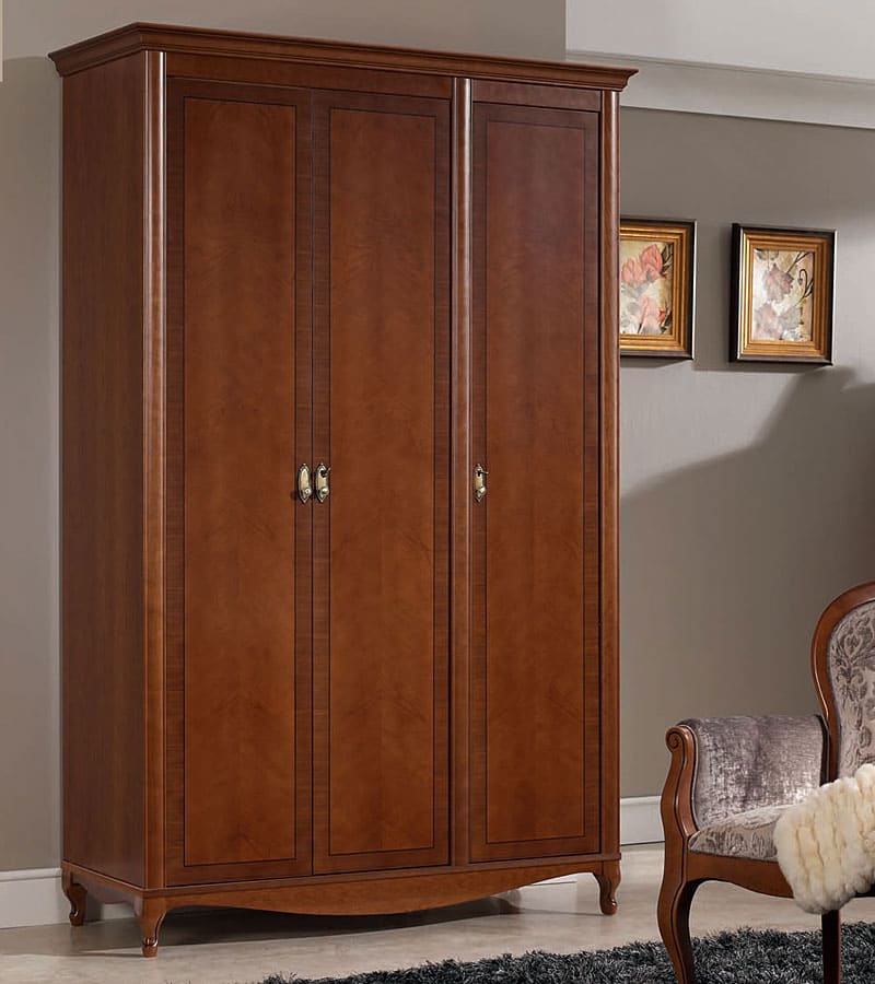 Шкаф платяной Панамар 877.003 цвет шпон орех nogal, 3-х дверный на ножках, материал мебельный щит из массива бука производство мебельная фабрика Panamar, Испания