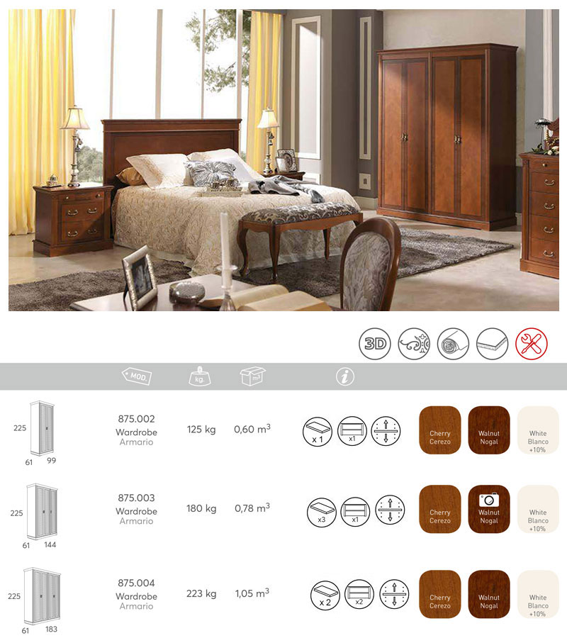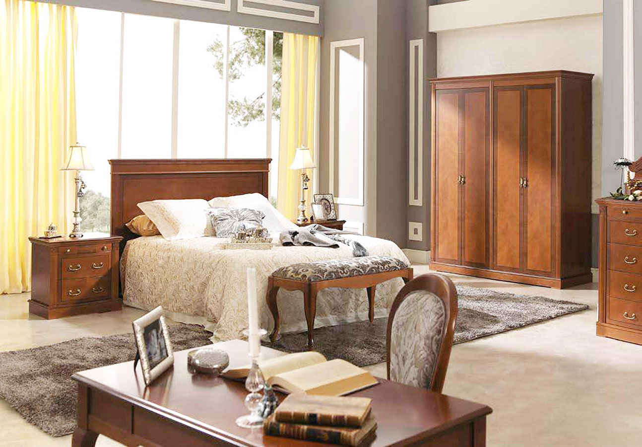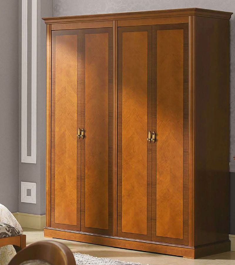 Шкаф платяной Панамар 875.004 цвет шпон вишня cerezo, 4-х дверный, плоский цоколь, материал мебельный щит из массива бука производство мебельная фабрика Panamar, Испания