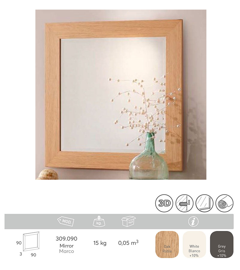 Зеркало Панамар 309.090 квадратное цвет дуб roble, материал рамы массив бука производство мебельная фабрика Panamar, Испания