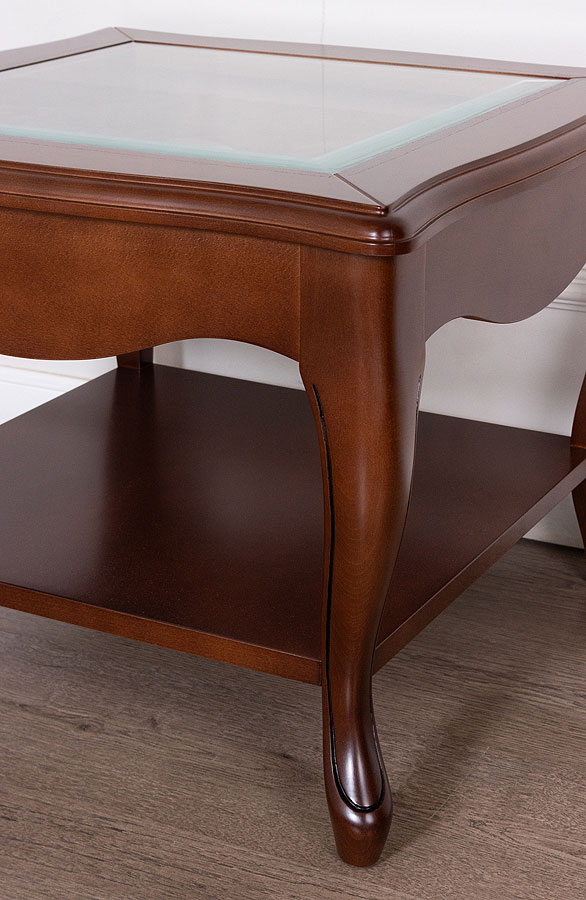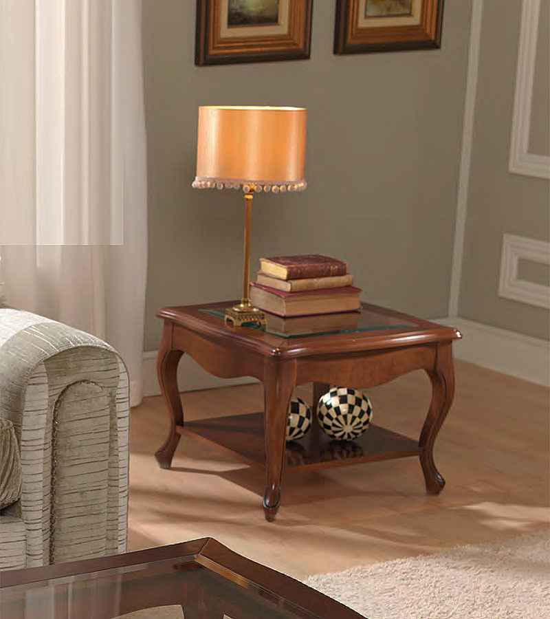 Журнальный стол Панамар 638.606 квадратный, стеклянная столешница цвет шпон орех nogal, материал массив бука производство мебельная фабрика Panamar, Испания