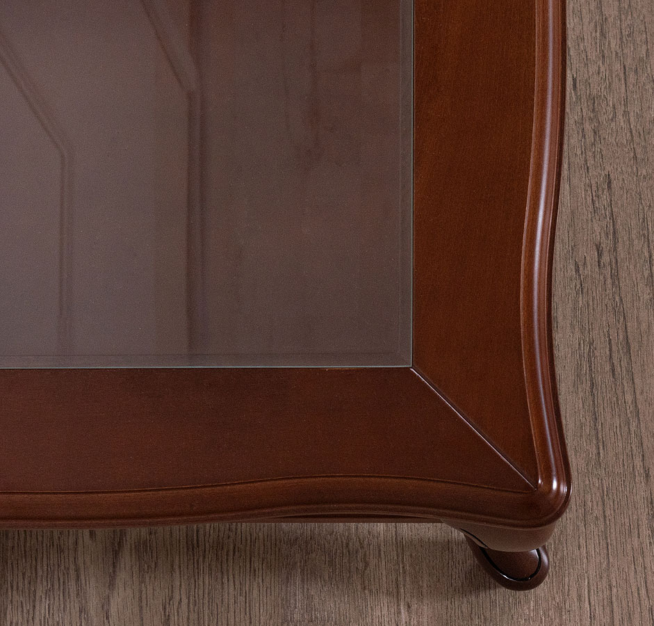 | стандартная комплектация: | Стеклянная столешница с фацетом в деревянной раме |