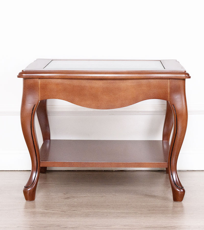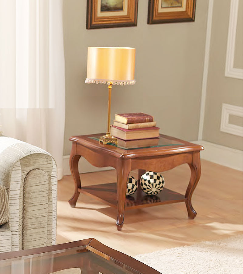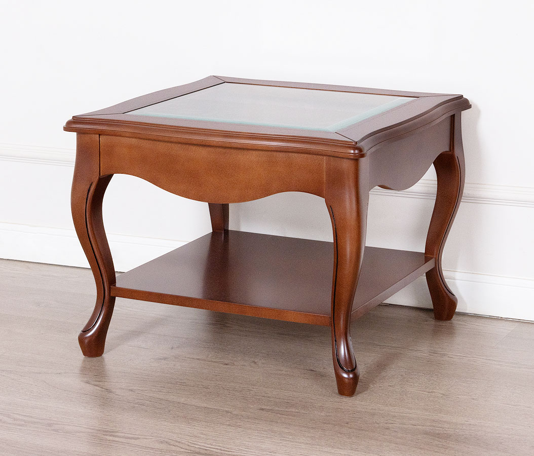 Журнальный стол Панамар 638.606 квадратный, стеклянная столешница цвет шпон вишня cerezo, материал массив бука производство мебельная фабрика Panamar, Испания