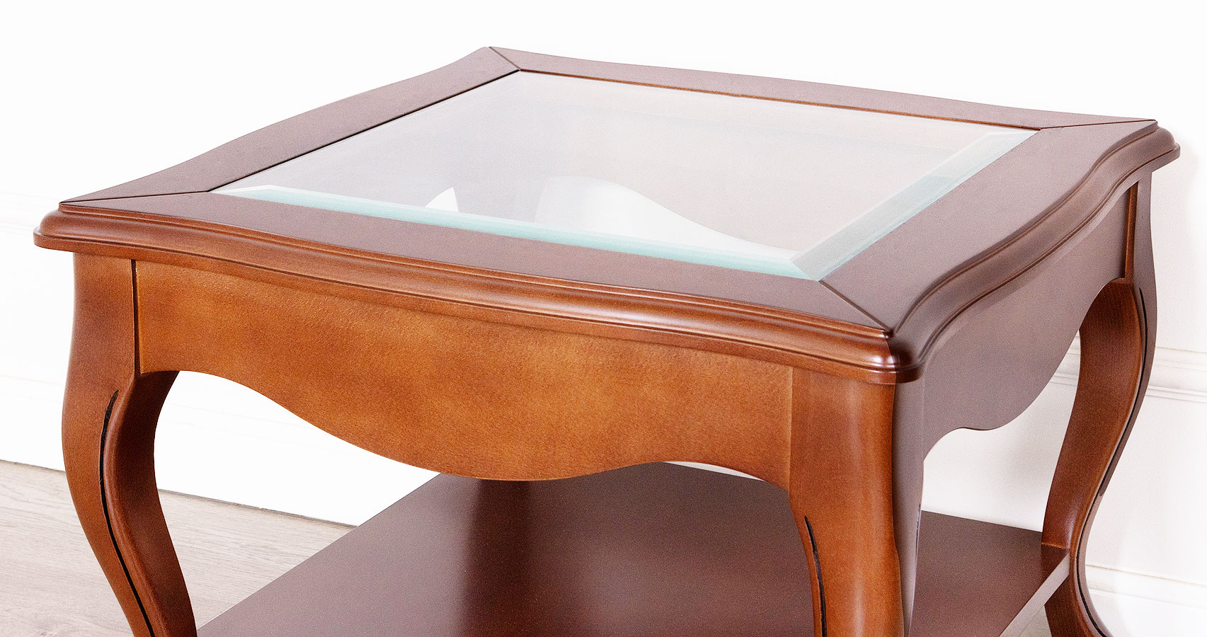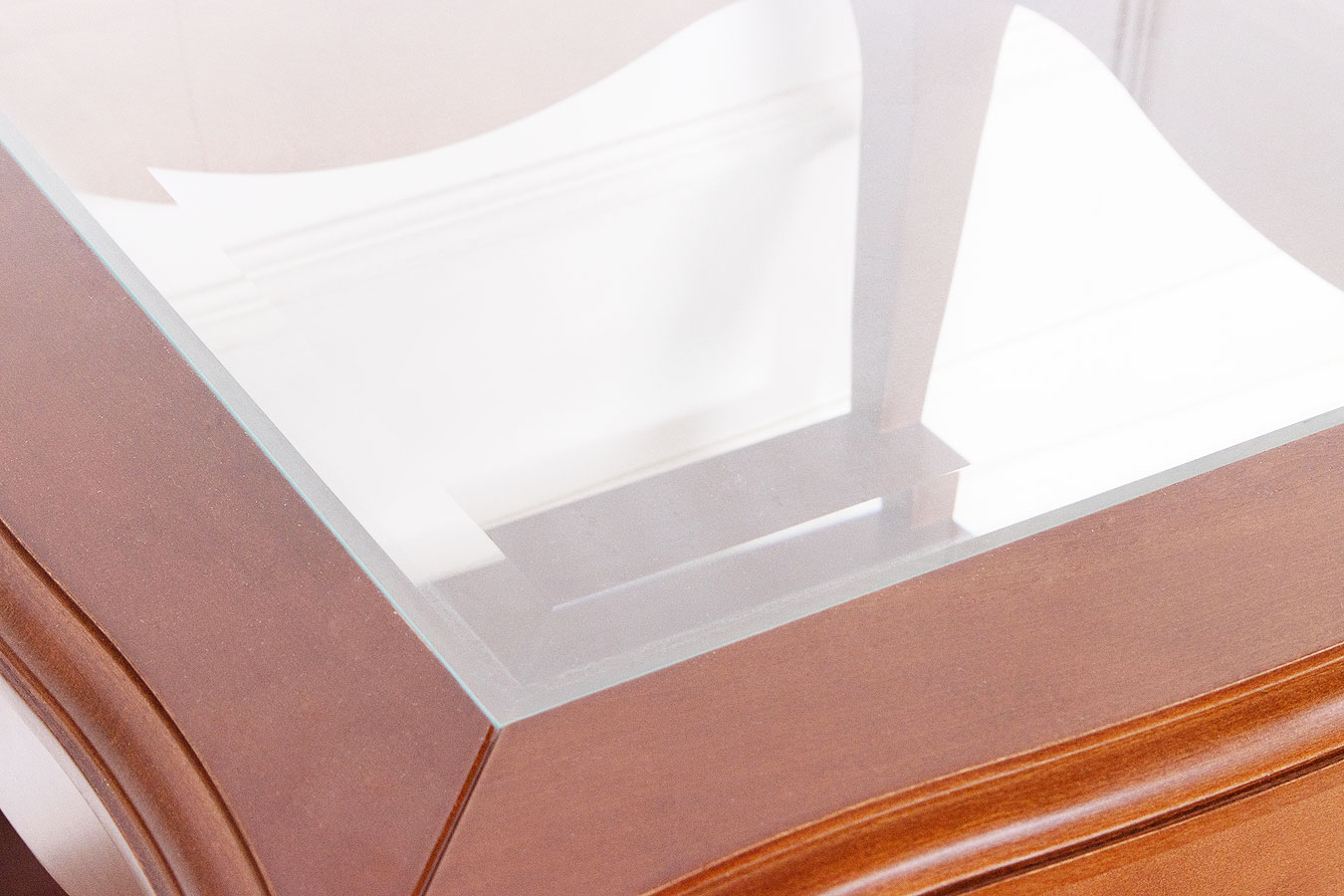 | стандартная комплектация: | Стеклянная столешница с фацетом в деревянной раме |