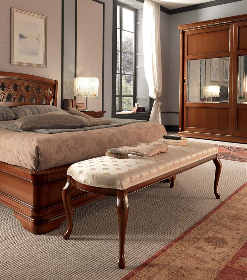 Банкетка Palazzo Ducale Prama Bakokko 71CI01PC ciliegio цвет вишня, 10 вариантов обивки ткань и эко-кожа, материал массив вишни ciliegio, производство мебельная фабрика Bakokko Group, Италия серия Classic