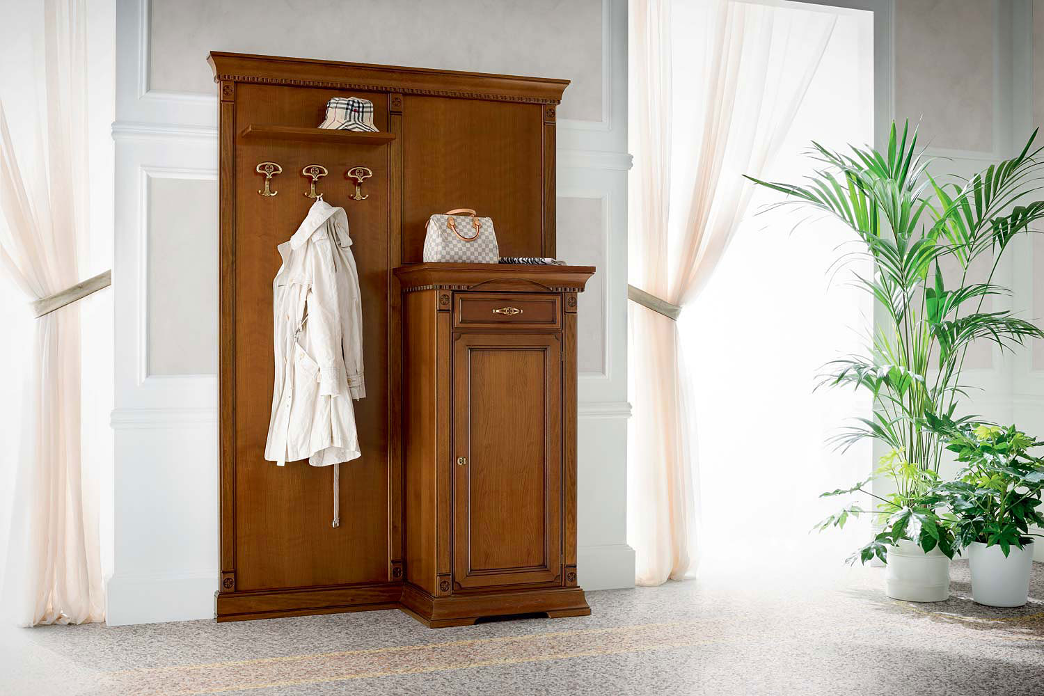 Прихожая Palazzo Ducale Prama Bakokko ciliegio цвет вишня композиция 6 длина 152 см, материал массив вишни ciliegio, производство мебельная фабрика Bakokko Group, Италия серия Classic