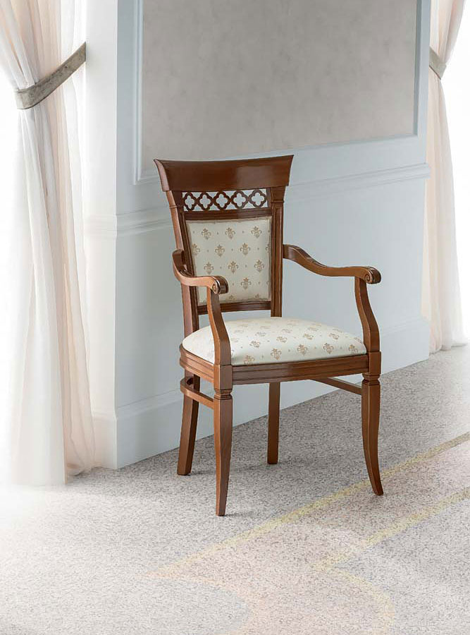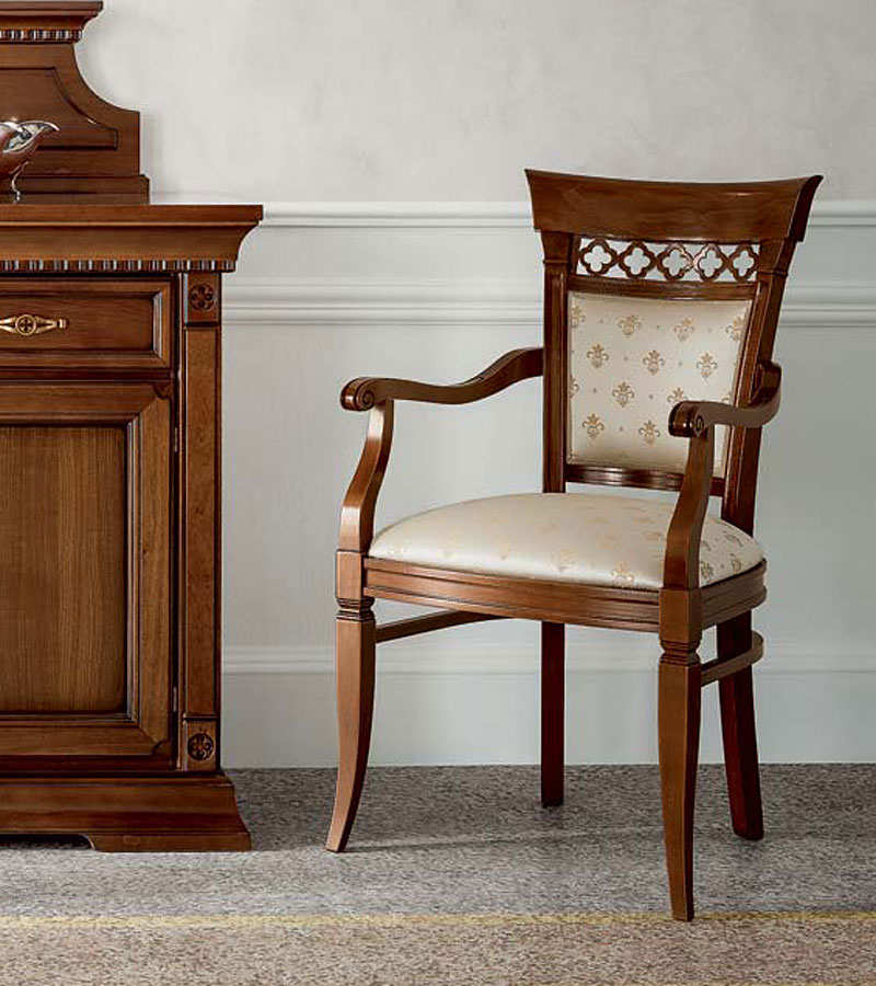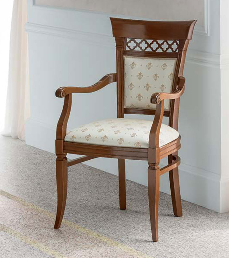 Стул с подлокотниками Palazzo Ducale Prama Bakokko 71CI62 ciliegio цвет вишня, 10 вариантов обивки ткань и эко-кожа, материал массив вишни ciliegio, производство мебельная фабрика Bakokko Group, Италия серия Classic