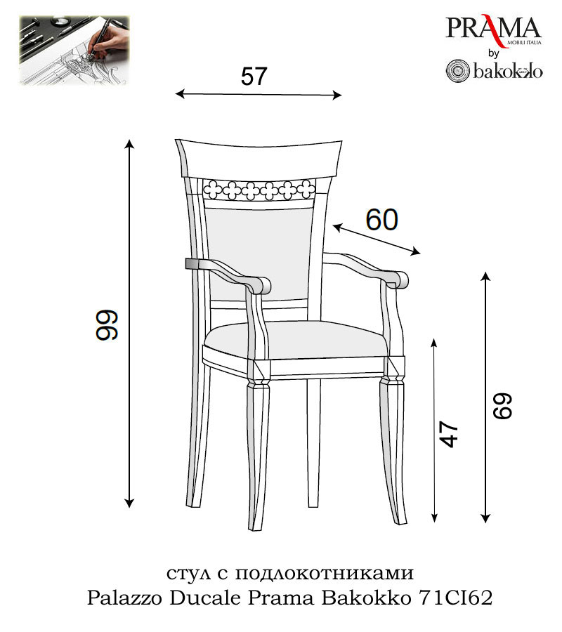 | стандартная комплектация: | Для стула с подлокотниками Palazzo Ducale Prama Bakokko 71CI62 предлагается 10 вариантов обивки из ткани и искусственной эко-кожи: ткань 01 FIORI; ткань 02 BEIGE; ткань 03 VERDE; ткань 04 ACQUAMARINA; ткань 05 ROSA; ткань 06 ROSSO; ткань 07 ECRÙ; ткань 10 BLU эко-кожа 08 TORTORA; эко-кожа 09 VERDE SCURO |