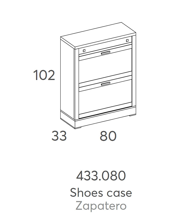 Обувница (тумба для обуви) Панамар 433.080 варианты цвета: шпон ореха nogal или шпон вишни cerezo, материал мебельный щит из массива бука производство мебельная фабрика Panamar, Испания