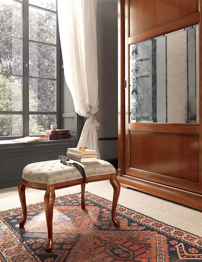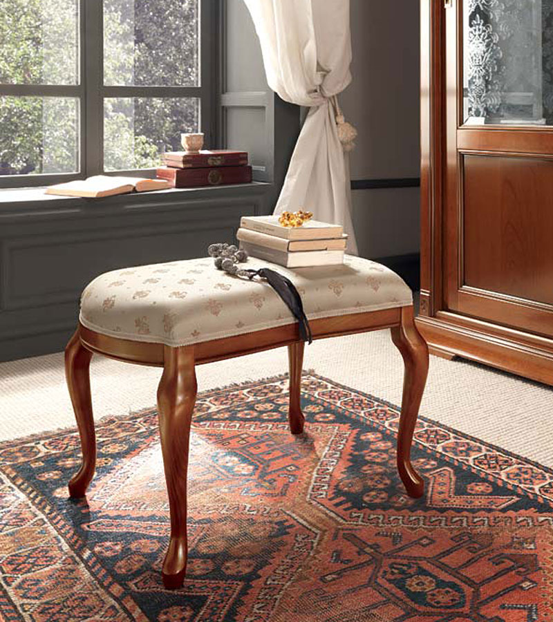 Пуфик (банкетка) малый Palazzo Ducale Prama Bakokko 71CI01PF ciliegio цвет вишня, 10 вариантов обивки ткань и эко-кожа, материал массив вишни ciliegio, производство мебельная фабрика Bakokko Group, Италия серия Classic