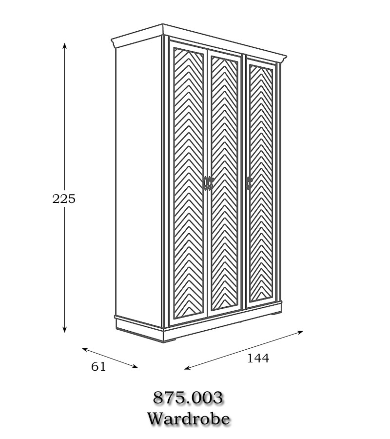 Шкаф платяной Панамар 875.003 цвет шпон орех nogal, 3-х дверный, плоский цоколь, материал мебельный щит из массива бука производство мебельная фабрика Panamar, Испания