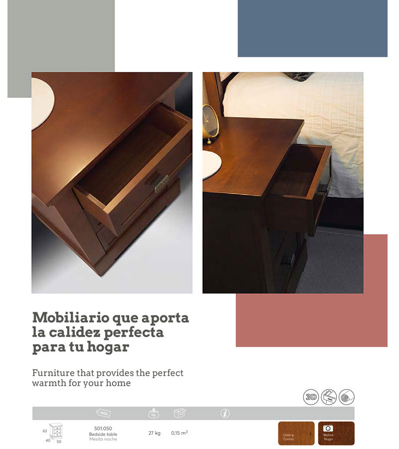 Тумба прикроватная Панамар 501.050 цвет шпон вишни cerezo материал мебельный щит из массива бука производство мебельная фабрика Panamar, Испания